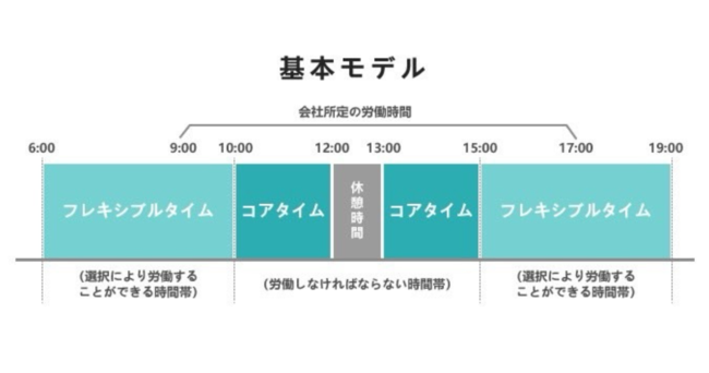 労働者が自身の裁量で決められる時間帯のことであり、労働者は定められたフレキシブルタイムの中から、自分が働きたい(あるいは働くべき)時間を決定することができる。