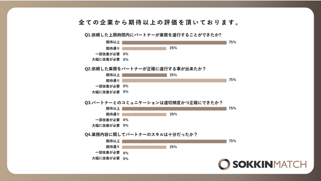 〈SOKKIN MATCHの強み:高い満足度から案件継続率90%以上!〉