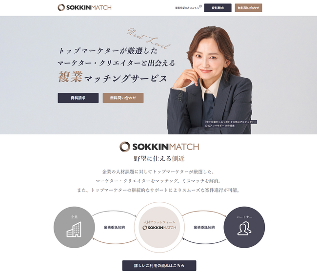 マーケター・クリエイター特化の業務委託マッチングサービス『SOKKIN MATCH』、お試し活用出来る『3ケ月30万円』のトライアルプランをリリース!