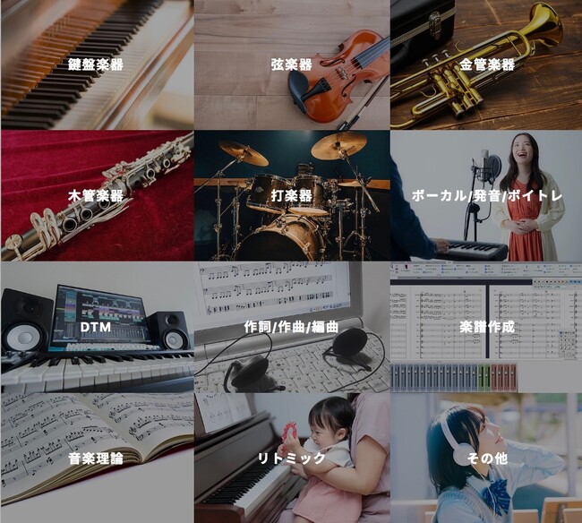 鍵盤楽器、管楽器、弦楽器、打楽器、歌唱、作詞作曲、音楽理論、DTM、その他民族楽器、クラシック、ポピュラー、ジャズなどあらゆる楽器、ジャンルの講師を募集しています。