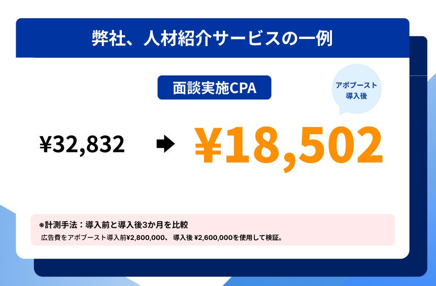 【面談CPA56%削減】自社広告500万円で実証!チャットボット×日程調整でアポ率UPの「アポブースト」正式リリース〜人材企業や地方銀行様へのクローズド導入でも成果アリ、営業・採用でのアポ効率を改善〜