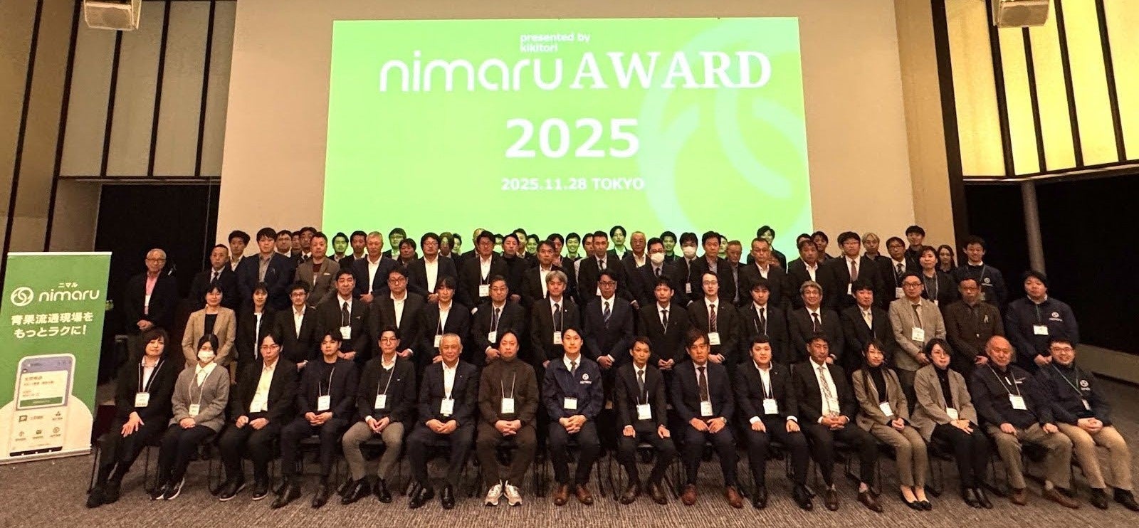 農業流通特化型SaaS「nimaru(ニマル)」を運営する株式会社kikitori(本社:東京都港区、代表取締役:上村聖季)(以降、kikitori)は、2025年11月28日に、日頃より「nimaru」をご利用いただいている事業者様の優れた取り組みを表彰し、成功事例を共有するイベント「nimaruアワード2025」をベルサール九段3Fで開催したことをお知らせいたします。