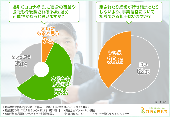 【億単位の被害を受けた経営者も!】中小企業経営者の3割以上が事業を運営する上で騙された経験あり!長引くコロナ禍の中、必要としているサポートとは