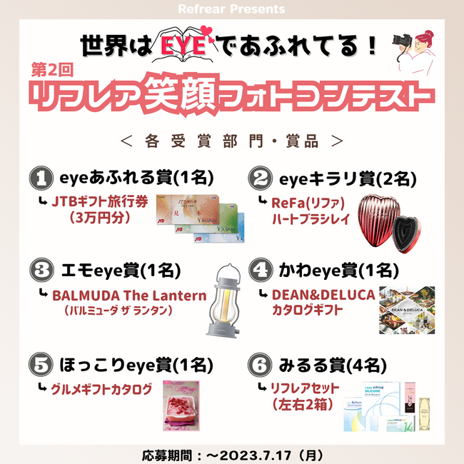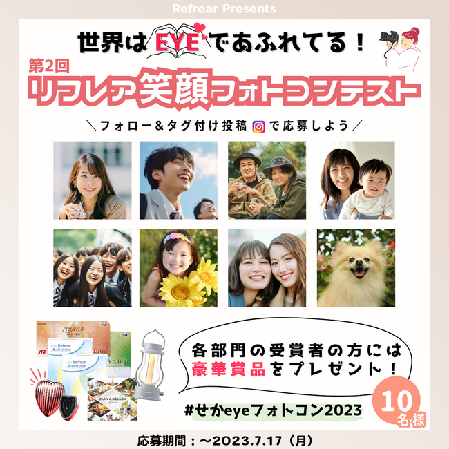 \インスタをフォロー&笑顔の写真投稿で豪華賞品をGET!?/世界は「eye」であふれてる!第2回リフレア笑顔フォトコンテスト開催!【期間:2023年6月24日〜7月17日】