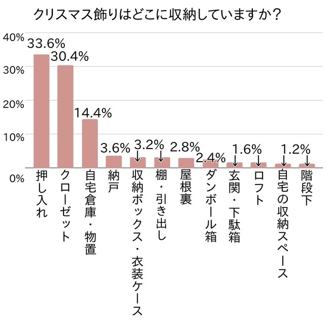 続いて、オフシーズンにクリスマス飾りをどこに収納しているのかを尋ねました。