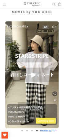 これによりTHE CHIC オンラインストアでは、より素材感の伝わる商品説明や着回しコーディネートを表示し、スマホファーストな縦型動画で訴求する事が期待出来ます。
