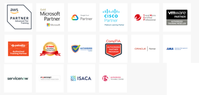 数々の有名企業から教育パートナーとして認定を受け、公式トレーニングを実施・提供しています。