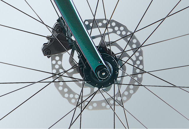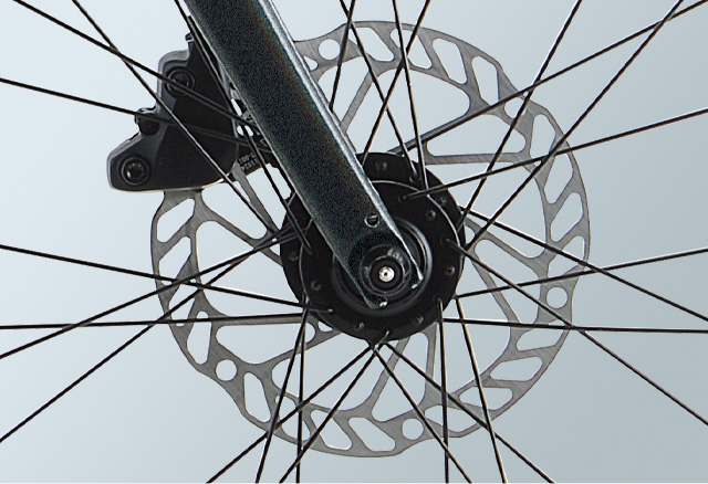 全天候で高い安定性を発揮する油圧ディスクブレーキを採用。フロントフォークは剛性・軽量性・快適性を備えるフルカーボン製。