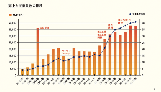 このような状況から「従業員が安心して仕事ができる環境を作るのが経営者の役割である」と自らの立ち位置を見直し、従業員がそれぞれ得意なことを生かす経営方針を実施していった結果、現在当社の従業員は40名(2022年12月現在)と、12年で約10倍にまでなっています。