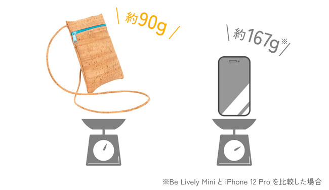 例えば弊社商品Be Lively Mini の場合、重さは約90g。一般的なスマートフォンより軽量です。