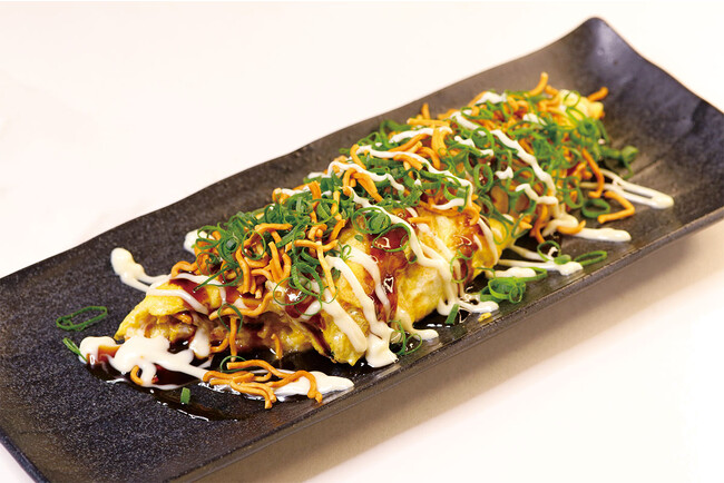 千房の人気サイドメニューとのコラボ。とろとろ卵に食感を残したベビースター、表面のパリパリベビースターと2種の食感を味わえます。ベビースターのコクと千房マヨネーズの相性がよく、おつまみにも最適です。