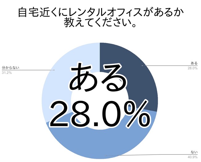 自宅近くにレンタルオフィスがあると答えた方は28.0%で、勤務先にレンタルオフィスがあると答えた方より19.3%も低いという結果になりました。