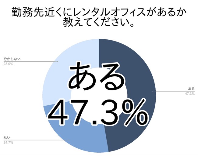 勤務先近くにレンタルオフィスがあると答えた方はほぼ半数の47.3%でした。