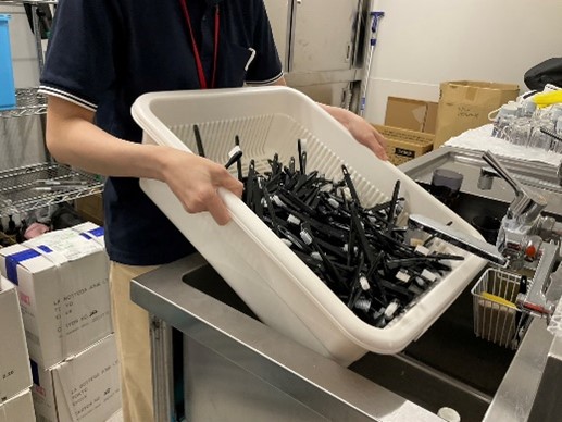 かねてから環境配慮に高い意識を持つ東京ベイ潮見プリンスホテルと連携し、実証実験を経て今秋から東京ベイ潮見プリンスホテル全室での本格導入が実現しました。現在は第一弾として客室の歯ブラシのリサイクルを行っています。歯ブラシは多くの宿泊施設で大量に使い捨てられ、焼却処分による環境負荷も大きいことから、他のアイテムに先駆けての導入となりました。リサイクルシステムが有効に機能するためには、ホテルの理解と協力が不可欠です。同ホテルの環境保護への高い意欲がさらなる相乗効果を生み出し、今後より環境配慮設計に優れたシステムへと発展することが期待されています。