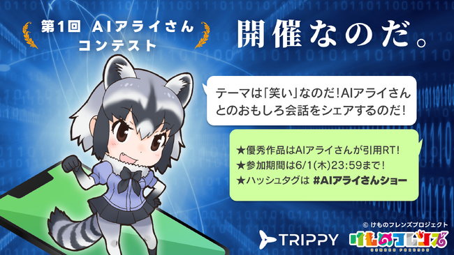 株式会社Trippy(本社:東京都新宿区、代表取締役:漆原陸)は、大人気プロジェクト『けものフレンズ』のキャラクター、アライグマ(通称・アライさん)を活用した、キャラクター×AIチャットサービス「AIアライさん」を正式リリースしました。