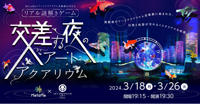 株式会社NTTドコモ(代表取締役社長 井伊 基之、東京都千代田区、以下、ドコモ)は、株式会社Amuseum Parks(東京都港区、代表取締役会長(CEO)亀井 孝明)と株式会社Relic(東京都渋谷区、代表取締役CEO 北嶋 貴朗、以下「Relic」)と共に、ドコモの最新技術を使用したメタコミュニケーションサービス「MetaMe(メタミー) *1」を活用し、2024年3月18日(月)から3月26日(火)まで、アートアクアリウム美術館 GINZA(所在地/銀座三越)にて「リアル謎解きゲーム交差する夜のアートアクアリウム」を開催いたします。