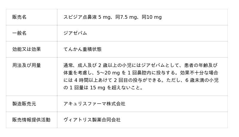 日本初の経鼻投与型抗けいれん剤「スピジア(R)点鼻液 5mg・7.5mg・10 mg」発売のお知らせ