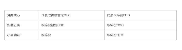 本変更に伴い、流郷、安藤、小高の執行体制により、本事業を推進してまいります。