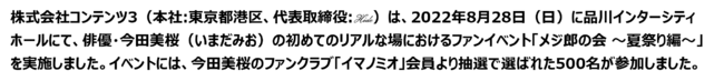 【イベント開催レポート】今田美桜が、ファンの前に浴衣姿で登場!初のリアルファンイベント「メジ郎の会 〜夏祭り編〜」開催