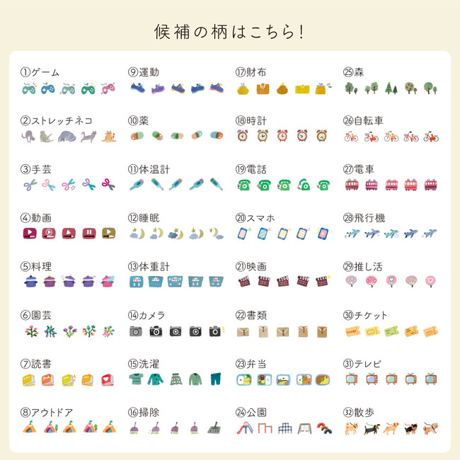 今回のキャンペーンは、32柄の候補の中からユーザー様に欲しい柄上位10個を投票していただく、お客様投票企画です。投票数が多い柄は2022年8月に商品化予定。また、商品化した「デコラッシュ」が当たるプレゼント企画も同時開催。あなたの一票で次のデコラッシュが決まります。ぜひご参加ください。