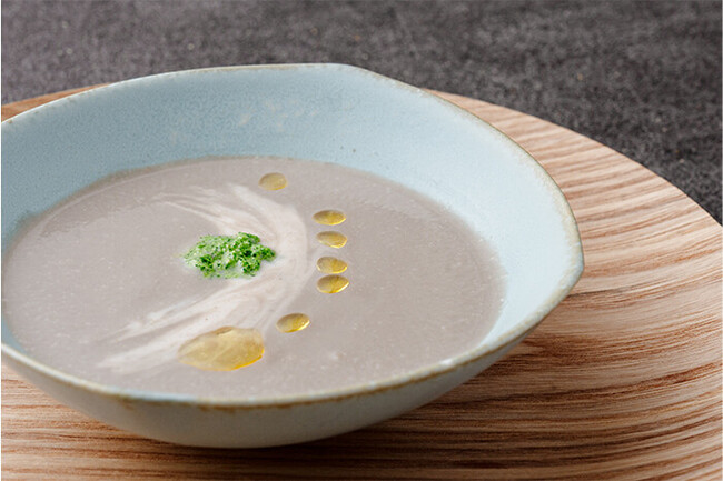 毎日作る野菜のお出汁にマッシュルームをふんだんに合わせた贅沢なスープに、柔らかな味わいのオーツミルクを掛け合わせ、クリーミーに仕上げました。