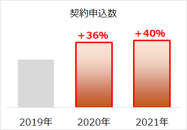 ・コロナ禍(2020年〜2021年)での契約申込数はコロナ前(2019年)と比較して大きく増加。