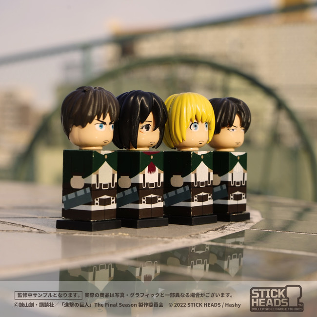 新シリーズ「STICK HEADS / スティックヘッズ」第1弾として、大人気TVアニメ「進撃の巨人」がミニフィギュアになって登場(全12種)。壁に囲まれた世界の中で突如現れた巨人と戦う調査兵団メンバー達を再現。