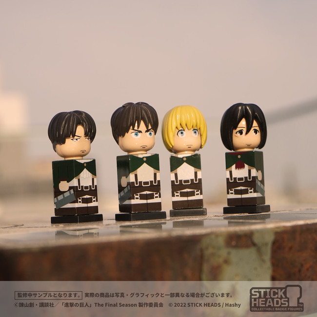 ※ STICK HEADS「進撃の巨人」vol.2(ジャン・サシャ・エルヴィン・ハンジ 4体セット)、vol.3(ヒストリア・コニー・ライナー・ベルトルト 4体セット)は、後日予約販売予定となります。予約時期については随時STICK HEADS公式サイトにてお知らせします。