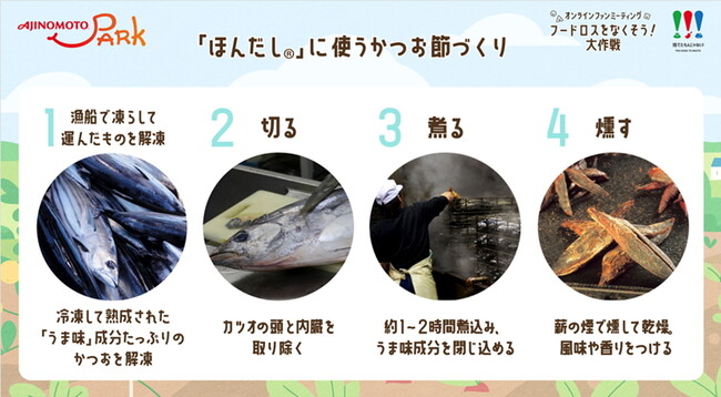 今回のファンミーティング「一緒に考える、フードロスをなくそう!大作戦」では、まず初めに、既に実践している当社の取り組みとして、「ほんだし(R)」の事例をご紹介しました。