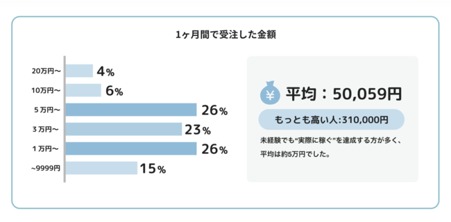 ??ワークキャリア卒業生が1ヶ月で案件受注した平均金額は「50,059円」