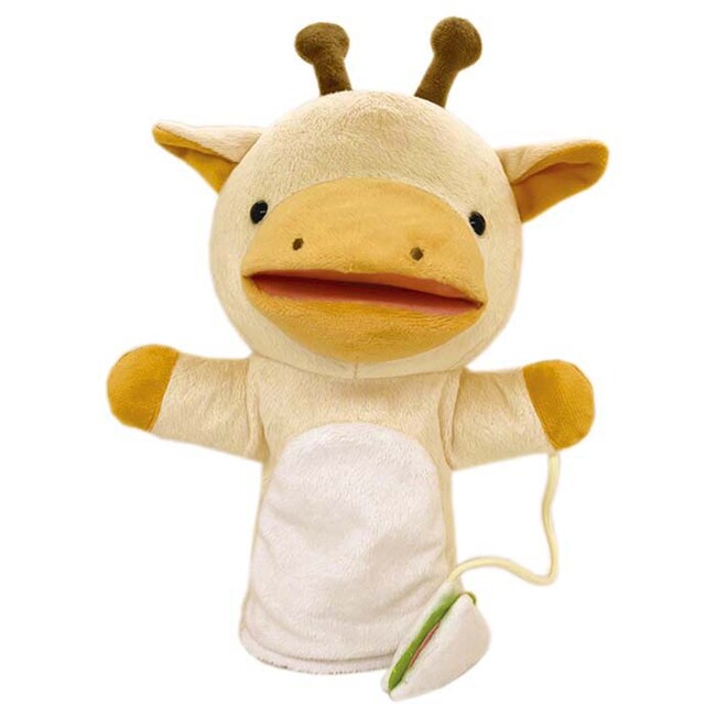 ウサギやヒツジなど6種類のカラフルで可愛い動物たち。それぞれイチゴやドーナツなどおやつを持っているので、パクパクと食べさせて遊べます。ごしごしパペットのカバ君には歯ブラシとムシバイキンが付いているので、歯磨きの練習にぴったり。贈り物としてもおすすめです。(対象年齢 3歳以上)