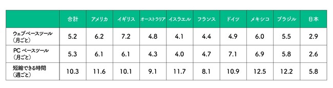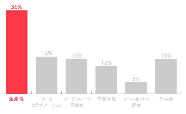 今回の調査結果から、世界的には約11種類の業務アプリ、または業務効率ツールが使われていることが判明しました。また、それらを統合することによって「週に10時間以上の業務時間短縮」になり、「生産性が上がる」と考えている人が多いこともわかりました。