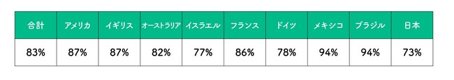 調査人数 :US・537名、UK・369名、オーストラリア・384名、イスラエル・386名、フランス・379名、ドイツ・375名、メキシコ・383名、ブラジル・385名、日本・364名、合計3562名