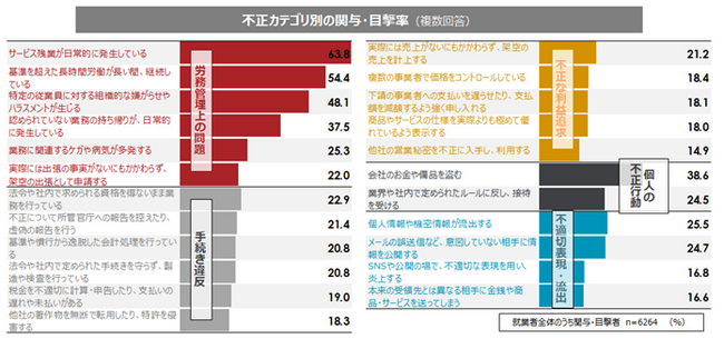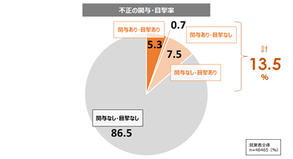 全就業者の13.5%が不正に関与したことがあるか、見聞きした経験がある。