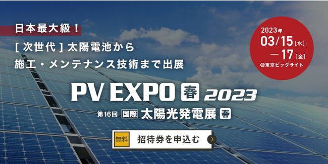 ・展示会:「スマートエネルギーWeek 【春】 2023」内の「PV EXPO【春】太陽光発電展」