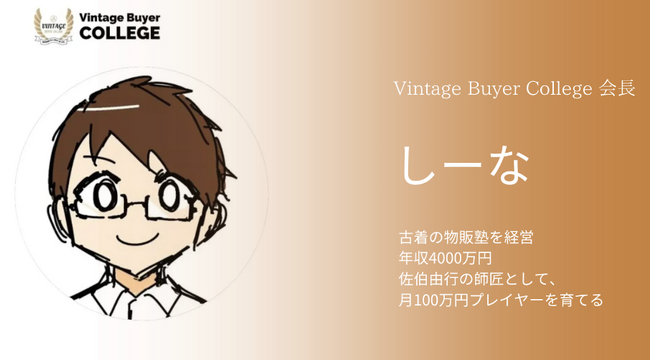 『世界にひとつしかない古着を世の中へ』をビジョンに現役古着バイヤーの佐伯由行が設立した古着バイヤー育成オンラインスクール。