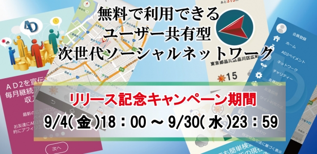 株式会社サイバーソリューション(代表取締役社長:國松幸雄、本社:北海道札幌市中央区)は、androidおよびiPhone(10月中旬リリース)向けスマートフォン向けアプリ『AD2』について、期間限定キャンペーンの概要を発表いたします。