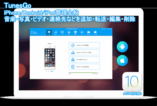 スマホ管理ソフトTunesGoをアップグレードしました。最新版のTunesGoはiOS10/iPhone7/7 plusに対応するだけではなく、iPodとAndroid系のスマートデバイスにも対応します。
