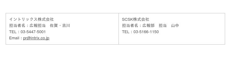 ※ 本リリースはSCSK株式会社、INTRIX株式会社から配信されておりますため、重複して配信される場合が