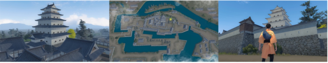 「KAMEOKA VIRTUAL HISTORIA」は、亀岡市文化資料館が所蔵する文化財をはじめ、市内各地の伝統芸能・祭事・風習・自然などの歴史文化資源を再現したメタバース空間です。現在はみられない亀山城天守や御殿などの江戸時代の亀岡の街並みを舞台に、ユーザーは各所にちりばめられた歴史資料を集めることで、地域にまつわる歴史に触れることができます。アプリ等のインストールは必要とせず、お手持ちのデバイスから誰でも手軽にアクセス可能です。