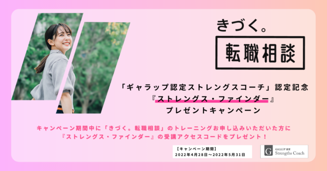 キャリアコーチングサービス「きづく。転職相談」代表が『ギャラップ認定ストレングスコーチ』に認定されたことを記念して、トレーニング受講者全員に「ストレングス・ファインダー」プレゼントキャンペーンを実施!