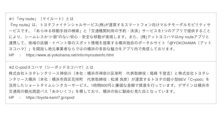 マルチモーダルモビリティサービス『my route(マイルート)※1』を横浜で展開する株式会社アットヨコハマ(本社:横浜市神奈川区栄町 代表取締役:上野 健彦、宮原 漢二)とみなとみらい21SP推進委員会(委員長:池本 裕生)は、みなとみらい21エリアのイルミネーションを盛り上げるコラボ企画として、『my route』からご応募いただいた皆様から抽選で16組様へ、「C+podレンタル3時間(サービス提供:C+podヨコハマ※2)」および「みなとみらい共通飲食券2,000円分」をセットにした『特別チケット』をプレゼントいたします。
