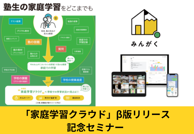 塾の垣根を越えた合同オンライン自習室みんがく、「家庭学習クラウド」β版リリース記念セミナーの開催を決定