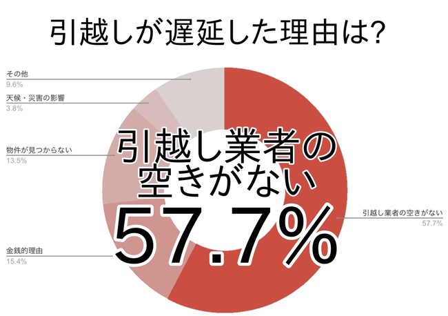引越しの遅れの約6割が「引越し業者の空きがないこと」が原因