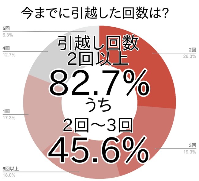 全体を見てみると、引越しを2回以上したことがある人は実に8割以上(82.7%)という結果でした。