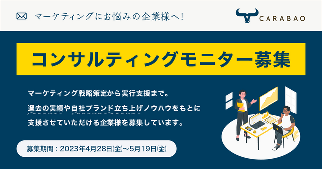 株式会社カラバオではマーケティングコンサルティングのモニター募集をいたします。