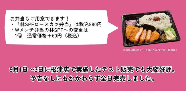 ・Wメンチカツ弁当のメンチカツを1個+60円で林SPFメンチに変更が可能です(税込630円+60円×1個か2個)