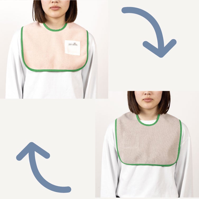 医療的ケア児の日々の「使いづらい」を減らしたい。そんな想いから生まれたのが、ぺたっと取り付け、片手で外せて、首周りを自由に調整できる「ぺたっとつけるスタイ」です。