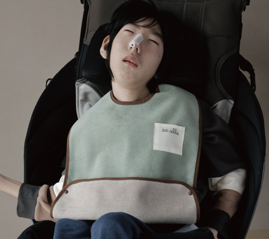 スタイを多数使用し、頻繁に買い替えの必要があるご家庭にも手に取りやすい価格帯です。また、to:alla(トアラ)の売り上げの一部はNPO法人アンリーシュへ寄付され、医療的ケアが必要な子どもの生活情報の充実、医療的ケア児家族が輝ける場の創出に役立てられます。