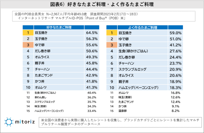 好きなたまご料理/よく作るたまご料理は「目玉焼き」がどちらもトップ